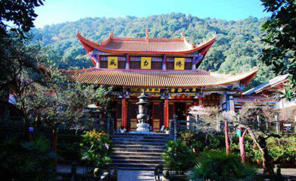 经历年修建,已有900余年历史,是昆明地区现存的最大一座寺庙。由钟楼、天王宝殿、大雄宝殿及若干花团组成。这里的佛像和五百罗汉塑像都塑得很有特点,历代楹联也耐人寻味。此外,园内还有名贵的茶花和罗汉松等奇珍大植物。该寺曾几度毁建,现存的是1923年由虚云大和尚重修,故又名“云栖禅寺”。寺内有大雄宝殿、天王殿、观音楼、撞钟楼、雨花台、放生池等古建筑。大雄宝殿有高一丈六尺的三尊金佛像,塑工精细,仪态慈祥。另有五百罗汉栩栩如生。天王殿两侧塑有四大天王和金身弥勒佛像,生动传神。天王殿大门口,挂有一幅明代谪居云南的四川新都状元杨慎写的名联,内容有山有水,有景有人,诗画交融,意韵无穷。其联云:一水抱城西,烟霭有无,柱杖僧归苍茫外;群峰朝阁下,雨晴浓淡,倚栏人在画图中。
