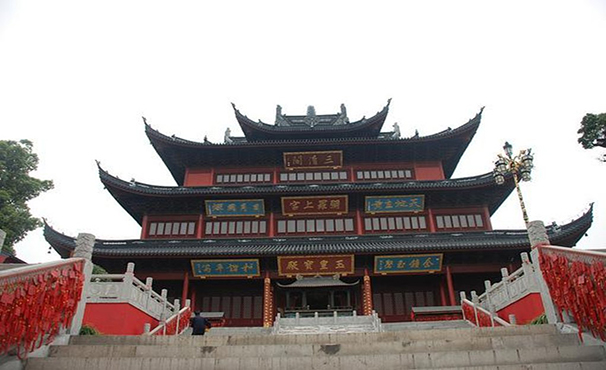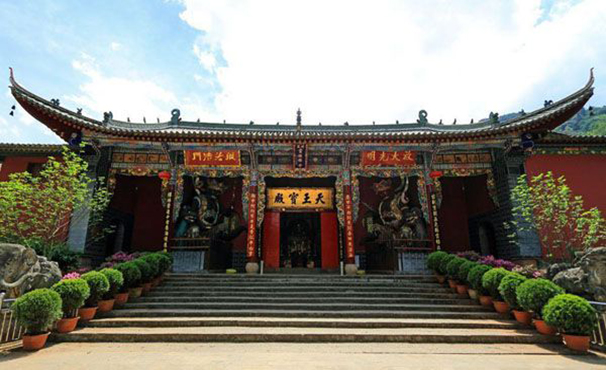 位于聂耳墓以南一公里。在陡峭的山崖上,绿树丛中点缀着琼楼玉宇般的一组亭阁,包括灵官殿、老君殿等共九层十一座木构建筑。登临观览,只觉地势高险,视野广阔,景致极为优美。正如“飞云阁”中有一联云:“半壁起危楼,岭恕工,海如镜,舟如叶,城廓村落如画,况四时风月,朝暮晴阴,试问古今游人,谁领略万千气象;九秋临绝顶,洞有云,崖有泉,松有涛,花鸟林壑有情,忆八载星霜,关河奔走,难得栖迟故里,来啸傲金碧湖山。”“三清”又称三清天,三清境,是道教三十六天仅次于大罗天的最高境界。三清阁内供奉着天宝君、太上道君、太上老君三个道教信奉的偶像。其它殿也各有所供奉。从罗汉崖山门向上有七十二级石阶,象征七十二地煞星。由灵宫殿西折而上,又有陡峭的三十六级石阶,象征三十六天罡。在真武宫后有泉一方,泉内有一尊小牛像,俗称“牛井”或“孝牛泉”。泉水清凉,终年不涸。相传明代曾有道士赵炼在此隐居,“苦无水,以牛载汲,垂二十余年矣,一日牛忽死,其处即陷为井,水味殊甘洌,虽盛暑不竭,”三清阁环境幽雅,空所清新。又是到龙门游览的必经之地,每天游人摩肩接踵而至。