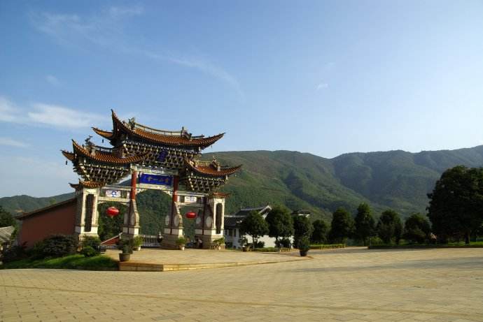 华首门距金顶寺仅670米,从左边小路可至后山,右返可经铜佛殿面是直上金顶寺。不但因为独特的奇、险而闻名内外,还因为相传它是释迦摩尼十大弟子之一的迦叶守衣入定(即打坐参禅)的地方,所以它在整全个鸡足山享有举足轻重的地位,被佛教称为“中华第一门”。华首门是鸡足山顶峰天柱峰西南的天然绝壁,笔直如削,下临万丈深渊,宛若崖壁上镶上镶嵌着一道大石门。华首门高40米,宽20米,中间有一道垂直下裂的石缝出,把石壁分为两扇,“门”的中缝悬挂着距离大致相等的石,这就是“石锁”,檐口、门楣清晰可辨,酷似一道貌岸然相等的石门,游人至此,仰观峭壁危崖直摩苍穹,猿猱难攀,摇摇欲坠;俯瞰幽谷深涧,云雾缥缈,深不见底,若置九霄。