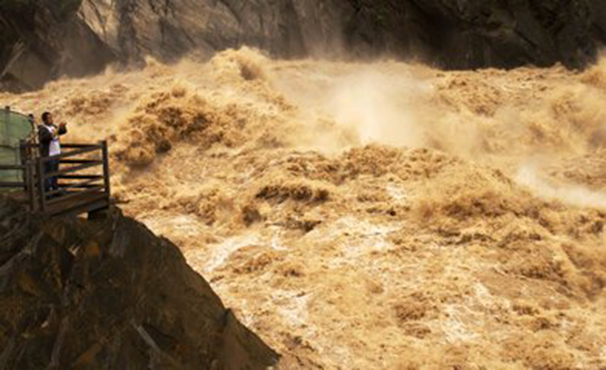 虎跳峡谷天下险。这虽给航行带来不便,但这个"险"中却蕴藏着一种美,一种摄人心魄的壮美,吸引了国内外游客到此寻幽探险。若从丽江大具进峡,下平台,沿小路绕至山脚,达下虎跳。两岸危崖壁立,在30来米宽的江面中,还屹立着四五米高的虎跳峡。江水从两边倾泻而下,犹如猛虎下山,风驰电掣,水花进射,山谷轰鸣。