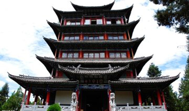 位于城内福国寺的五凤楼始建于明代万历二十九年(公元1601年),楼高20米。因其建筑形制酷似五只飞来的彩凤,故名五凤楼,楼内的天花板上绘有多种精美的图案。五凤楼融合了汉、藏、纳西等民族的建筑艺术风格,是中国古代建筑中的珍宝和典型范例。