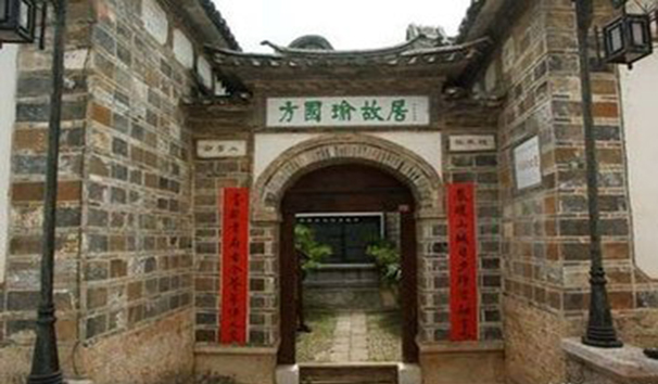 位于五一街71号、72号,由两重跑马转角楼四合主院和两个三坊一照壁书屋小院及一后花园构成多进院落面。占地1.98庙,总建筑面积1473.2平方米,是丽江古城民居建筑中的保存最完好、规模较大的典型院落,被列入丽江古城重点保护民居和古城区文物保护单位。2002年古城保护管理局开辟为方国瑜故居,2009年9月列为云南省爱国主义教育基地。故居正门悬挂有世贡第匾额,为清光绪十年(1884年)立。