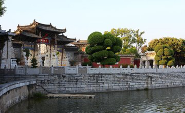 整个庙宇,一片翠绿,古木萧森,庄严肃穆。松、柏、竹、柳,千姿百态,各种花卉争妍斗艳,四时飘香。庭西有两株共生树,一为柏树,一为榕树。数百年的风风雨雨,它们已经紧紧缠在一起。有人戏称为“万将军抱白小姐”。 建水城,为旧临安府所在地,元、明、清三代曾是滇南的政治、经济和文化的中心,加上文庙规模宏大,建筑精巧,素有“滇南邹鲁”之称。