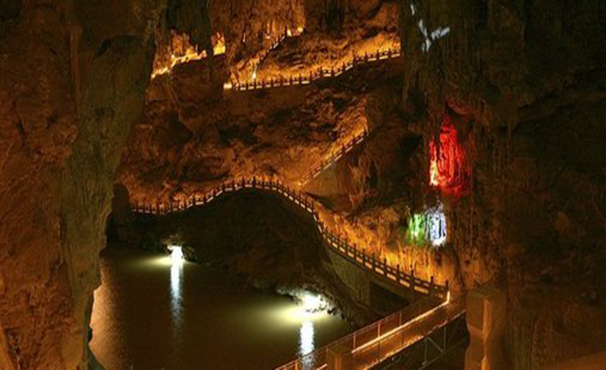 在洞内3千米曲折蜿蜒、高低起伏的游览线上,分布着3组规模宏大的岩溶景观,每一景区各呈现出形形色色的钟乳群,整个水洞大小厅堂数十个,其中最大的达2万多平方米,景点数百个,游览面积达4万多平方米。