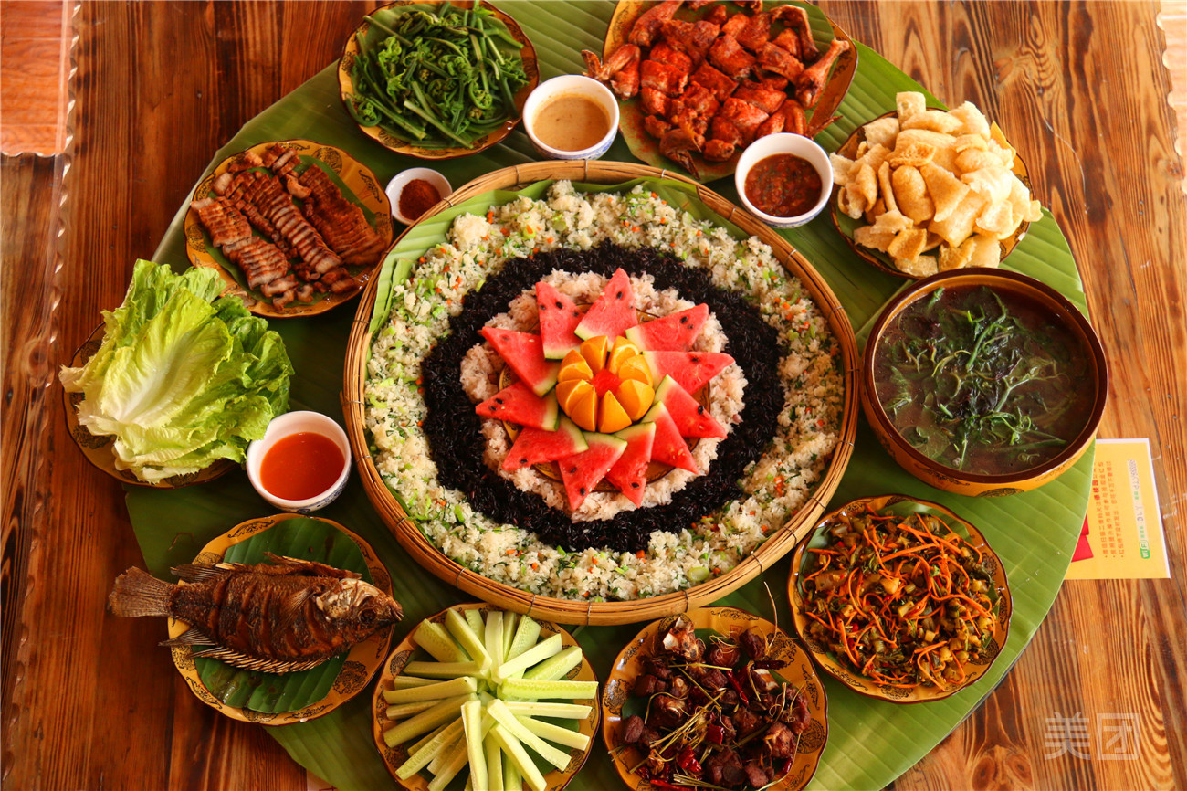 傣菜,富有浓郁的民族特色和地方特色,它在滇菜派系中,别具一格;在云南省24个少数民族的菜肴中,独享盛誉。曼景兰食品街,由原来的一家傣味餐厅,迅速发展为十几家傣味餐厅,变成一条具有民族风味的食品街。椰林餐厅、婉丽饭店、醉君楼……使中外游客青睐,在欧美各国、加拿大、新加坡、日本已小有名气。当你一睹美丽的西双版纳风光之后,来到醉君楼歇歇脚的时候,你会品尝到用香茅草捆绑着的烤鱼;用竹筒煮出来的香喷喷的糯米饭;用芭蕉叶包裹着的蒸肉、蒸脑花;芭蕉叶烤蝌蚪;油炸芭蕉、油炸青苔……等等。这种既饱眼福、又饱口福的旅游生活,将使你其乐无穷,终生难于忘怀。