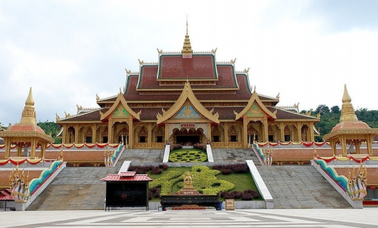 勐泐大佛寺位于云南省西双版纳傣族自治州州府景洪市城郊,按照国家AAAA级景区标准打造。勐泐大佛寺是在古代傣王朝的皇家寺院"景飘佛寺"的原址上恢复重建的,"景飘佛寺"是傣族历史上一位名叫拨龙的傣王为纪念病故的王妃南纱维扁而修建。王妃一生信奉佛法,所以每逢节日傣王就亲临寺院,举行大型法会,以纪念爱妃同时弘扬佛法。