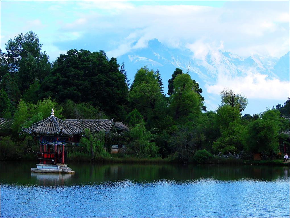 丽江黑龙潭公园也叫玉泉公园,位于丽江古城北象山脚下,从丽江古城四方街沿经纬纵横的玉河溯流而上,约行一公里有一处晶莹清澈的泉潭,即为中外闻名的黑龙潭,是丽江金沙旅游网重点推荐的丽江旅游景点之一,黑龙潭内随势错落的古建筑有龙神祠、得月楼、锁翠桥、玉皇阁和后来迁建于此的原明代芝山福国寺解脱林门楼、五凤楼,原知府衙署的明代光碧楼及清代听鹂榭、一文亭、文明坊等建筑。