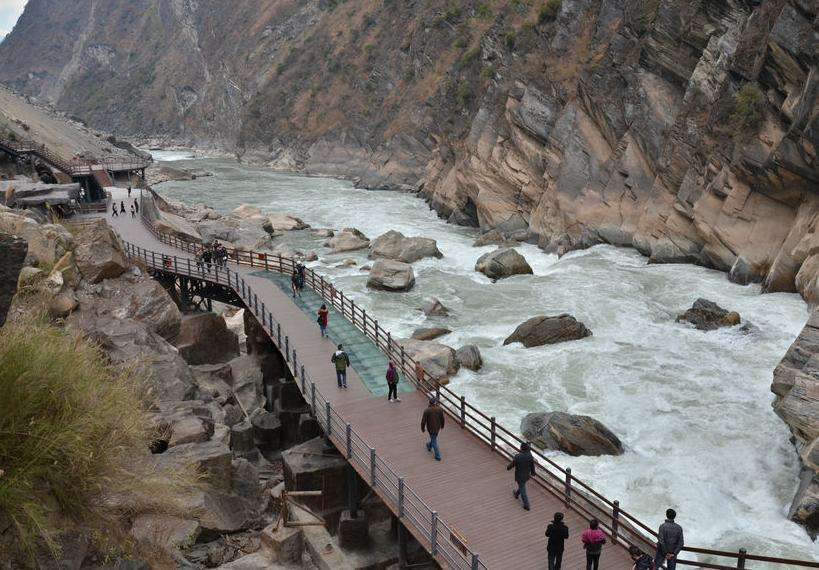 丽江虎跳峡景区内的栈道非常平整,走起来很轻松,更适合一家老小出行,休闲游玩。如果实在体力不支,还可以乘坐景区的人力车(大约每车60元,可乘2人)。从丽江这边也可以看到江对岸香格里拉虎跳峡的步道,如果体力充沛,推荐去香格里拉虎跳峡徒步,会别有一番感受。