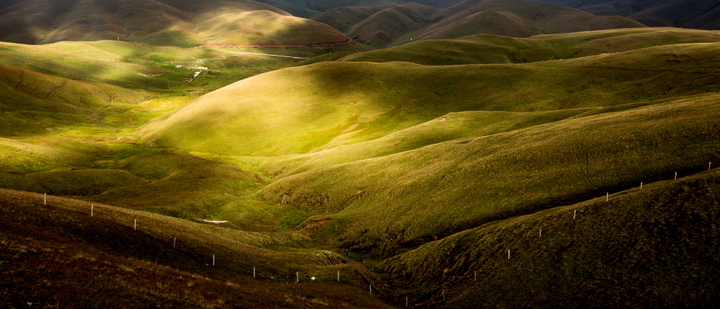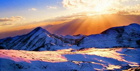 草山的秋冬季节几乎找不到分界,一雨便成冬。雪往往是突然而来。伴着雪,风走龙吟,把雪扫拢在低洼背风处,一条条、一团团,与黄黄的草相衬相映,白的更白、黄的越黄,最是在不期而至的落日余晖照映之下,浓烈的彤红里,色彩更加神秘丰富,线条更加飞扬灵动。三五次的雪后,绵绵草山便被严严实实地包裹了个透,放眼所及,尽是银亮一色,逶迤莽莽,俨然北国风光。尤是白雪翻飞,把天拉得更低,地扬得更高,天地间浑然一色。低洼背阴处的雪在表面上结成硬硬的一层冰,一直留到次年春天,犹如上界散落在人间的银带随意挂在天地间,层界分明而耀眼涤神。