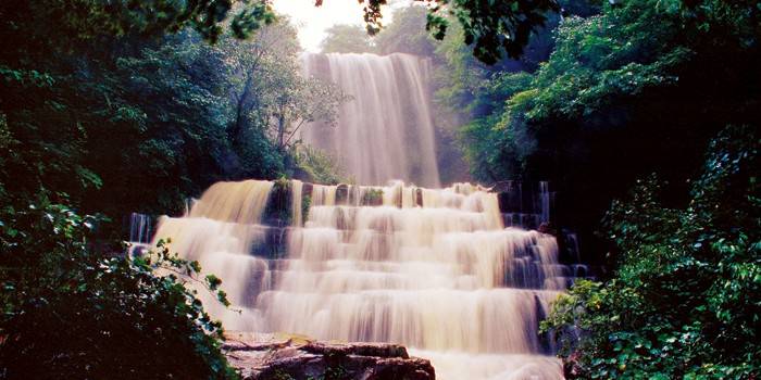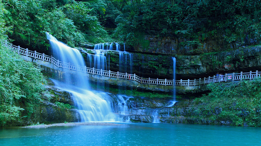 沿途山花烂漫、幽谷纵横、清泉奔涌、鸟语花香。主要景点有仙女瀑、情郎瀑、少女瀑、月老瀑、鸳鸯瀑、洞房瀑、相思瀑、对歌瀑、姊妹瀑、银链瀑、迎客瀑、寿星瀑,共拥有大小瀑布47个,落差较大的就有14个。其中最著名的情郎瀑落差高达142米。还有令人心旷神怡的水帘长廊和使人销魂惬意的大滑板等20多处,加上形似飞鸽的世界珍稀植物珙桐花,堪称天下奇景。